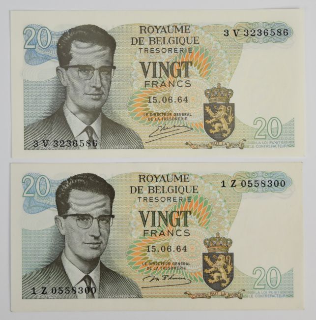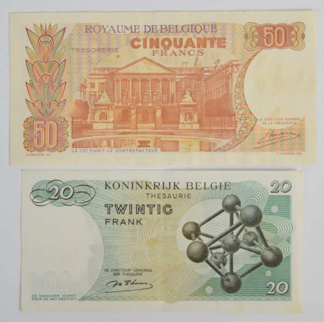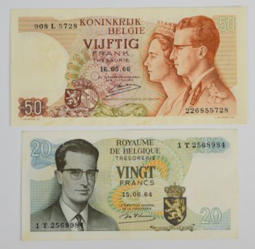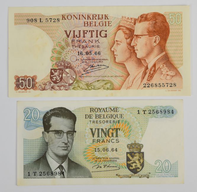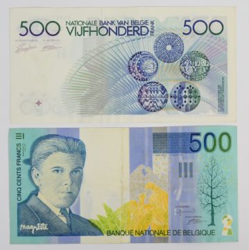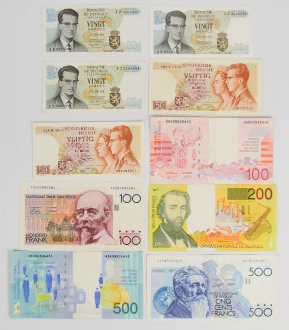Ten Belgium 1965-1998 banknotes including 100, 200 and 500 Francs and smaller denomination 1964-66 issue Treasury notes