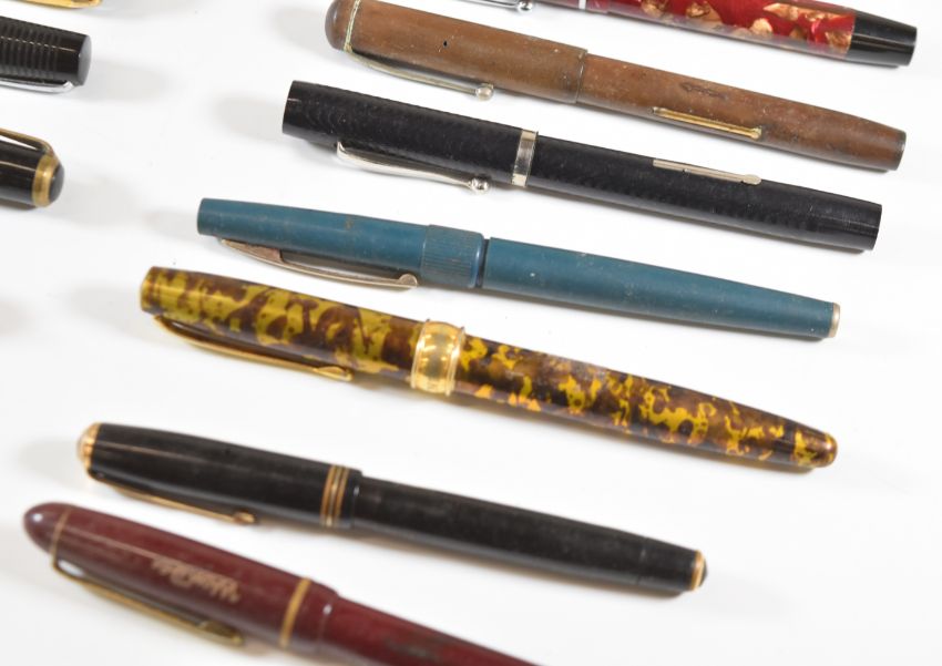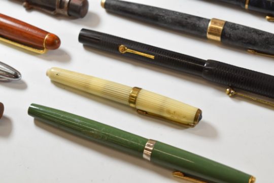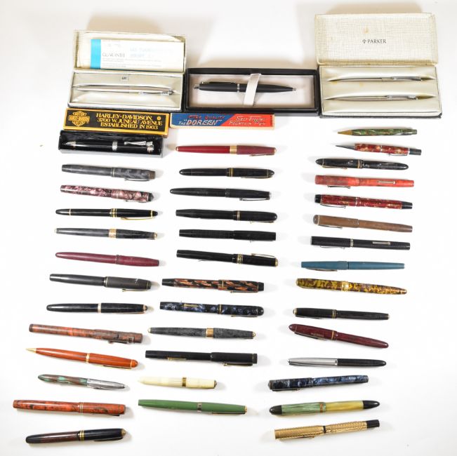 Forty-four fountain and ballpoint pens including Parker, Wyvern 60C, Savoy, Borghini, Conway Stewart, Morrisons, Regency, Relief 2, The Unique etc, some in original boxes.