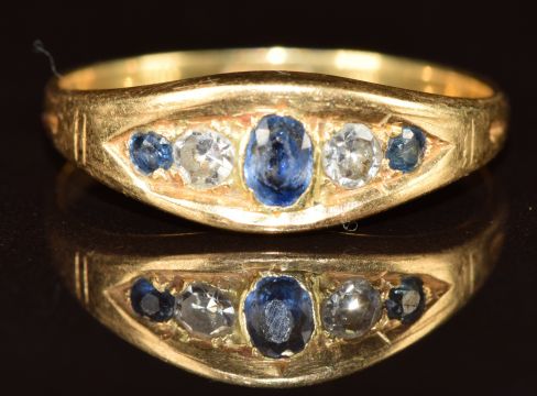 A c1920 18ct gold ring set with sapphires and diamonds, 2.4g, size M