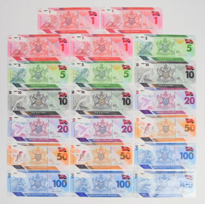Twenty Trinidad & Tobago 2019-20 banknotes including all denominations from $1 to $100