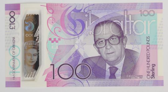 Gibraltar 2015 £100 banknote issued to commemorate the 100th Anniversary of the Birth of Sir Joshua Hassan