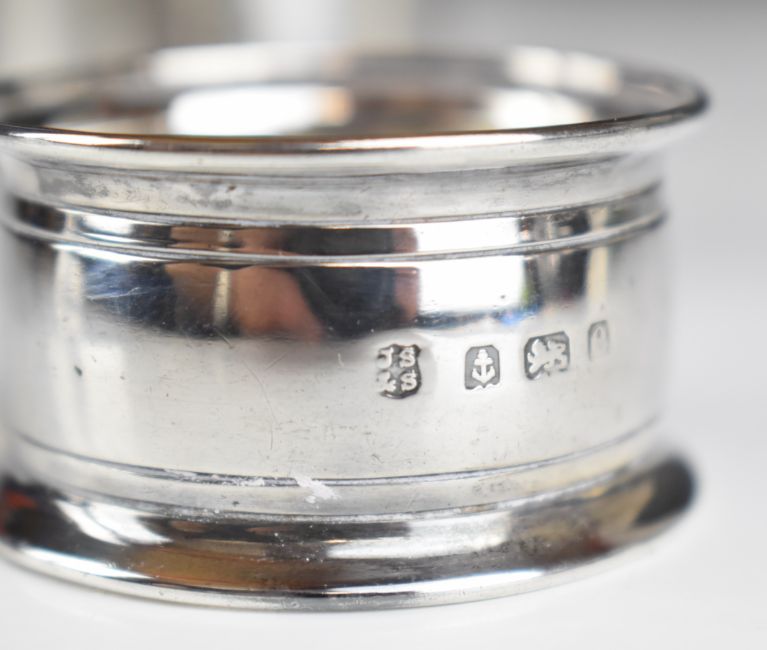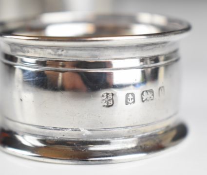 Two hallmarked silver napkin rings including one Scottish, Edinburgh 1944, maker Joseph Leton, weight 65g