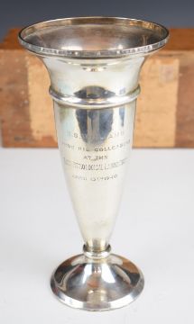 Mappin & Webb George VI hallmarked silver vase, London 1938, in original wooden box named Mappin & Webb, height 23cm, weight 204g