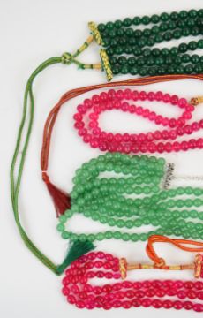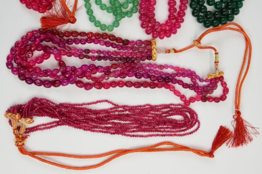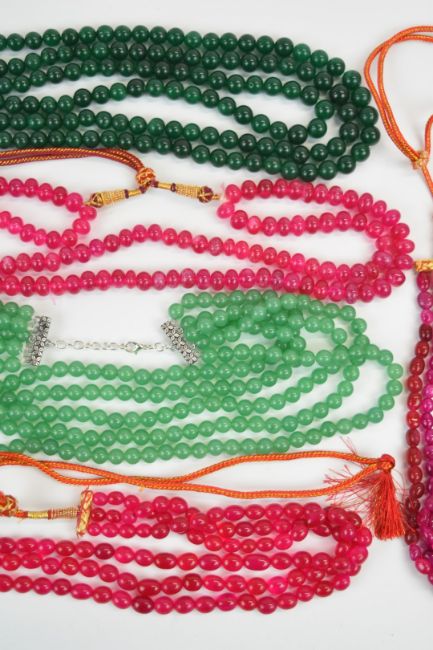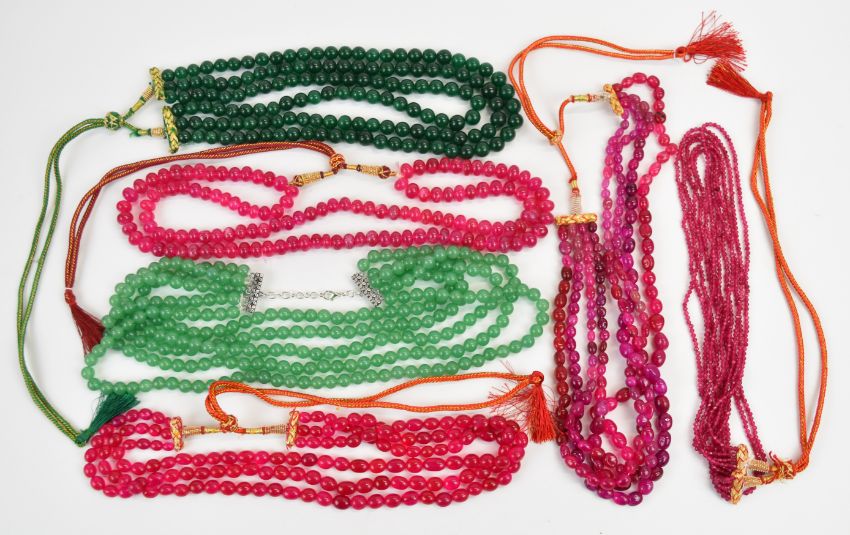Six beaded dyed quartz necklaces