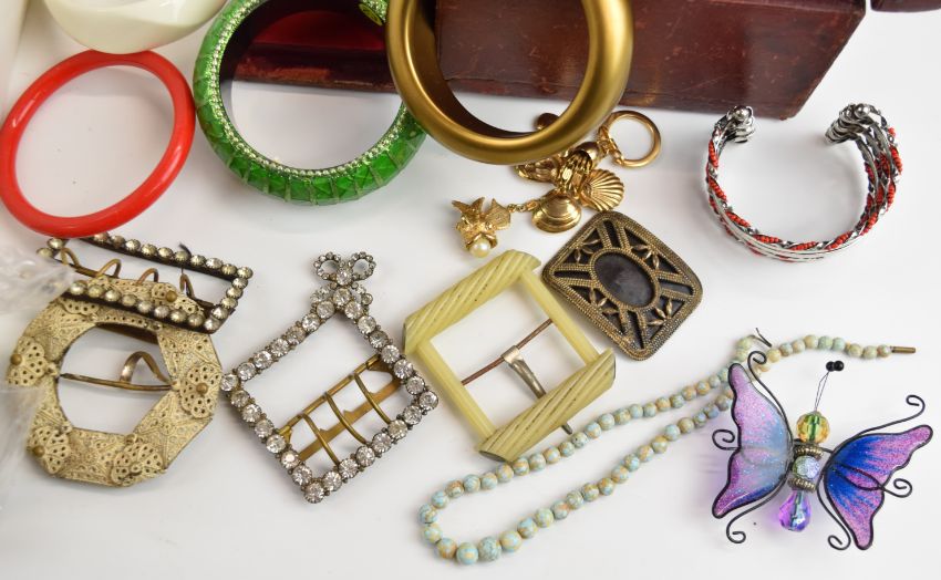 A collection of jewellery including vintage earrings, vintage brooches including Miracle, Siam silver, agate, jet and Art Deco Czech examples, bangles, etc
