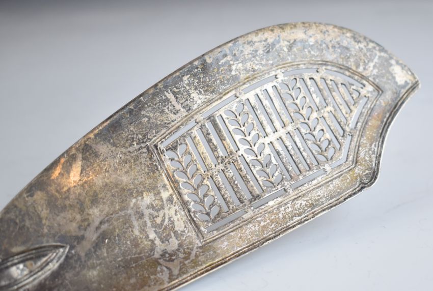 Georgian hallmarked silver fiddle thread and shell pattern fish serving slice, London 1810, maker William Eaton, length 30cm, weight 136g