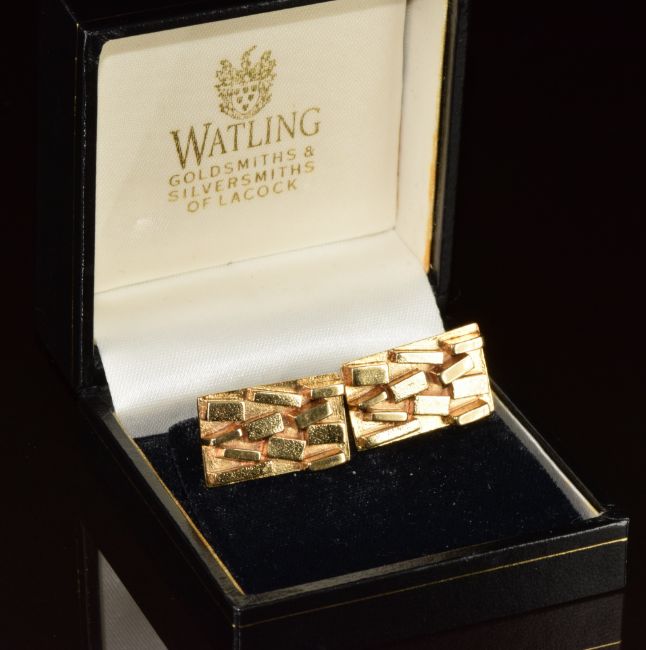 John Watling pair of 9ct gold mid century modern textured cufflinks, 17.6g