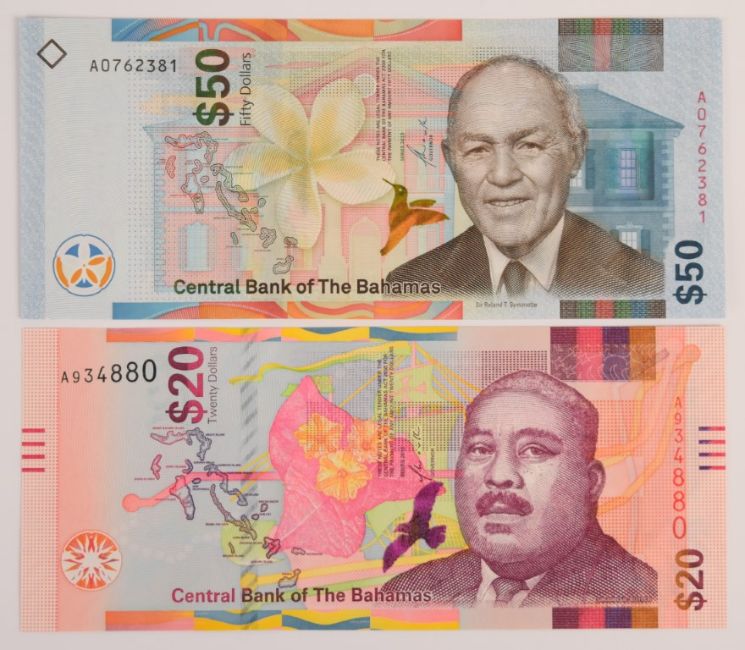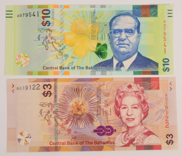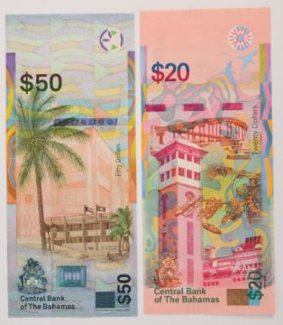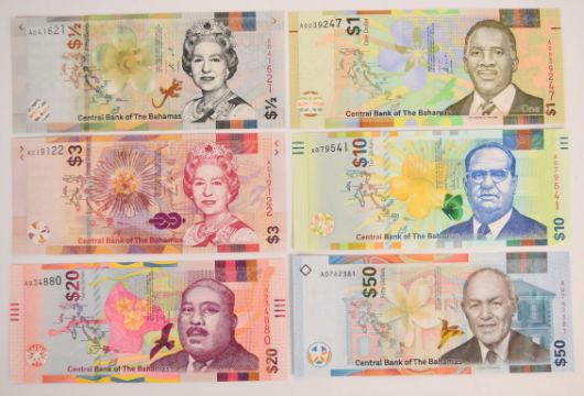 Six Bahamas 2016-19 banknotes comprising $½, $1, $3, $10, $20 and $50