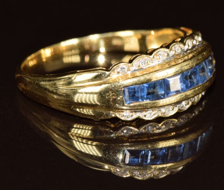 An 18k gold ring set with sapphires and diamonds, 3.6g, size R