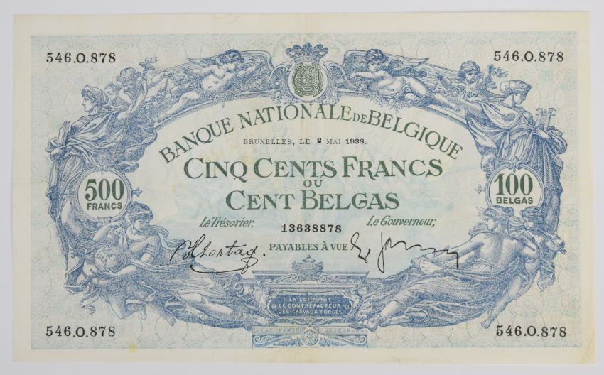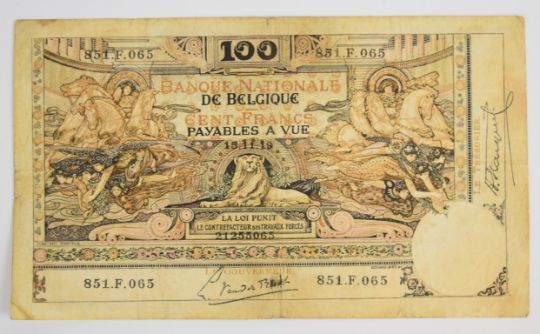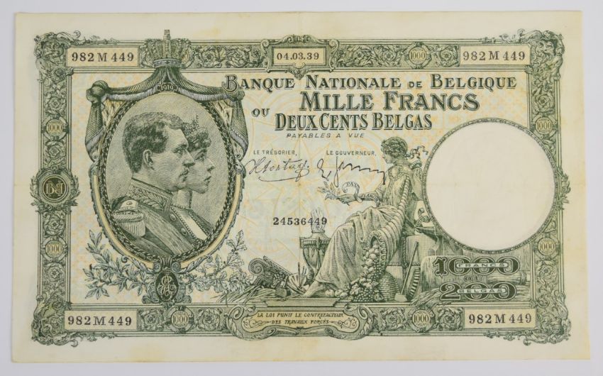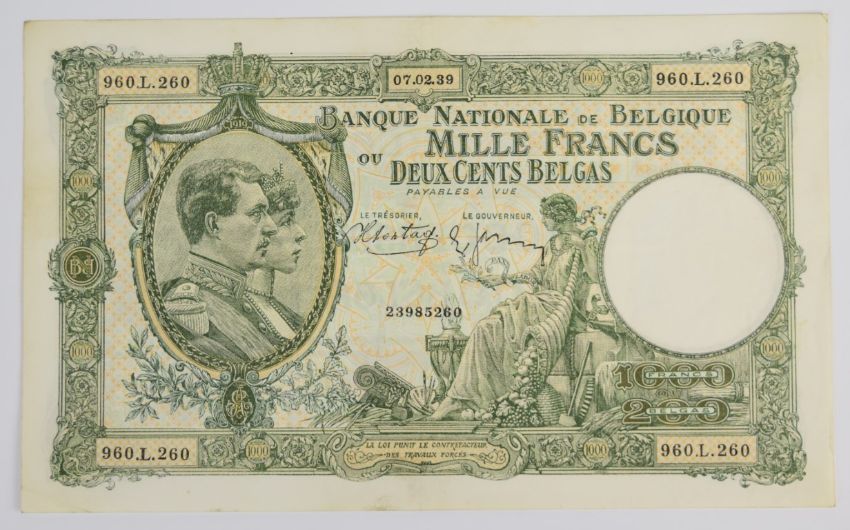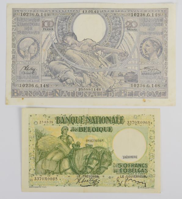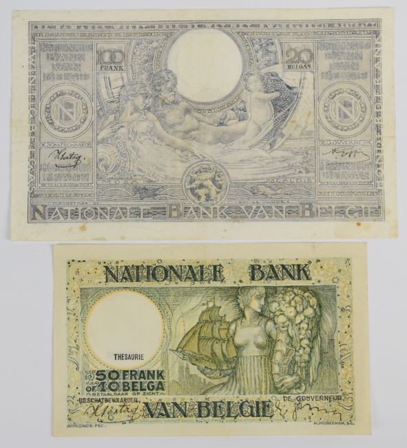 Seven Belgium 1919-1943 banknotes comprising 1919 100 Francs plus 20, 50, 500 and three 1000 Franc notes dated 1938-1943