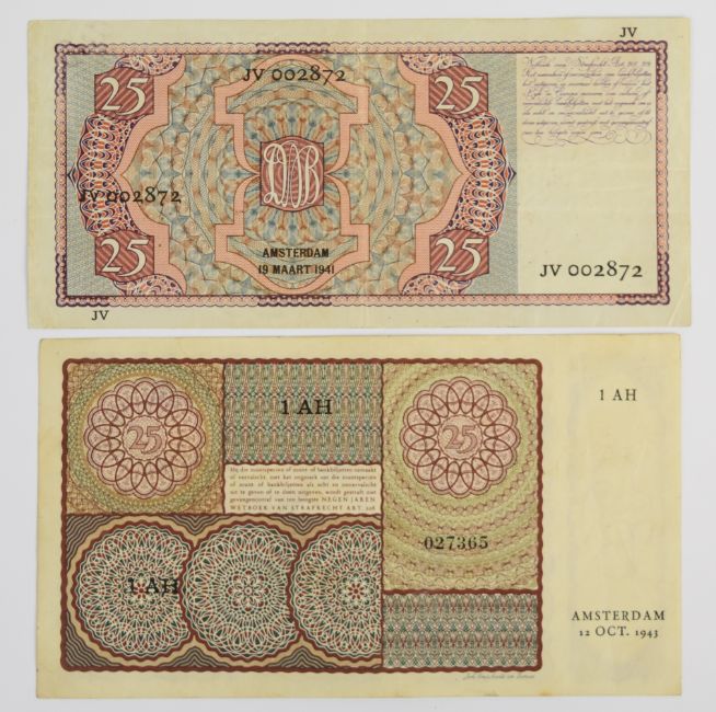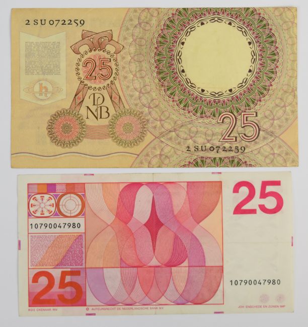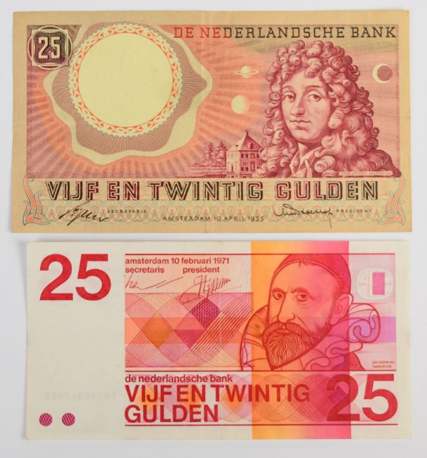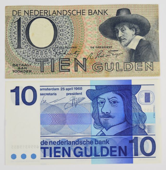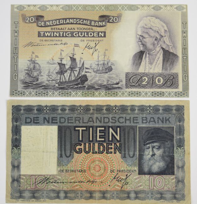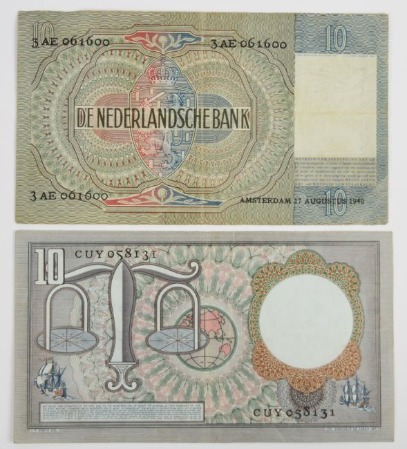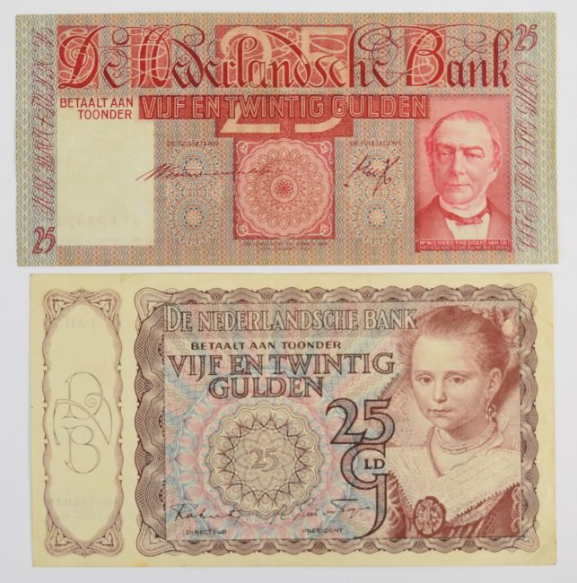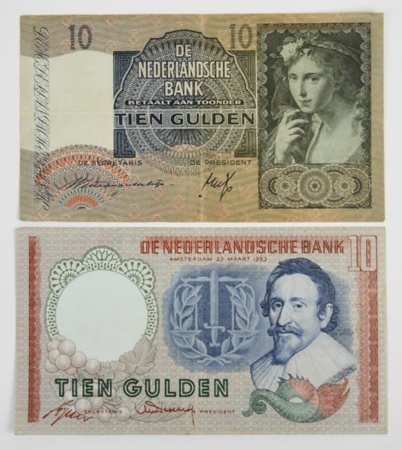Thirteen Netherlands 1930-71 banknotes comprising 1953 10, 100 Gulden notes plus a 1955 25 Gulden, seven WW2-era (1939-44) notes and three notes (5, 10 and 25 Gulden) of the 1966-72 issue