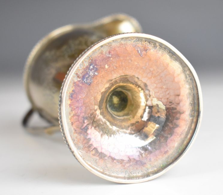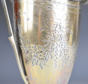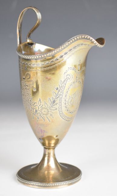 Georgian hallmarked silver helmet shaped jug with engraved decoration, London 1781, maker's mark indistinct, height 15.5cm, weight 124g