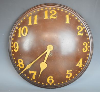 Early 20th century dome shaped clock with mahogany body and gold Arabic numerals, overall diameter 35.5cm