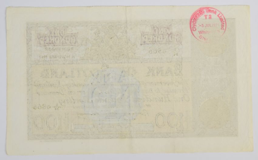 Bank of Scotland 1962 £100 banknote signed Bilsland/Watson