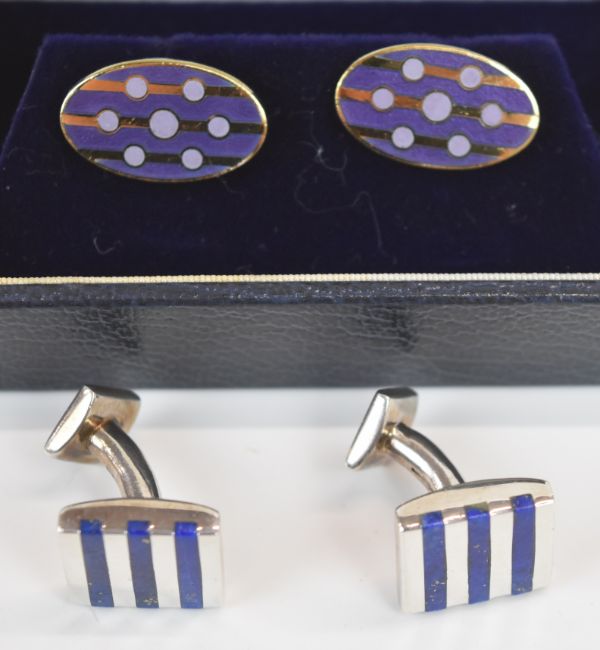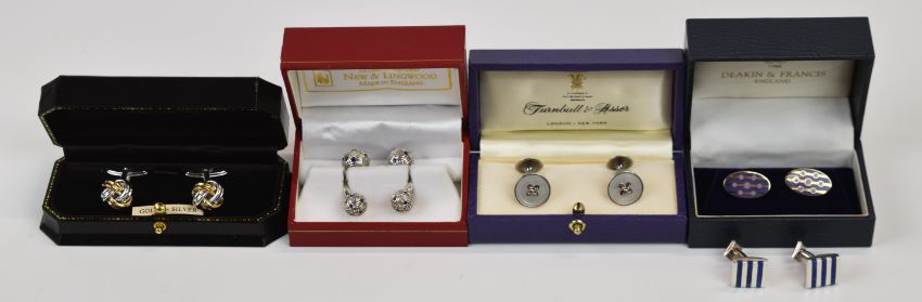 Five pairs of silver cufflinks including knots, Deakin & Francis, mother of pearl by Turnbull & Asser, lapis lazuli, etc