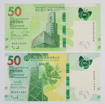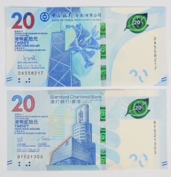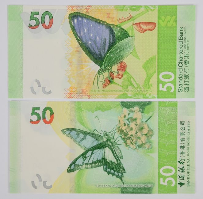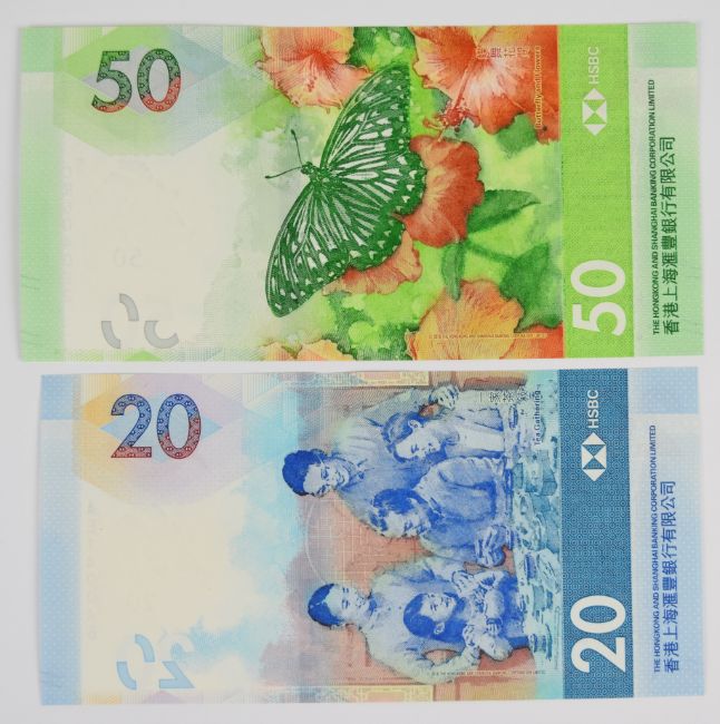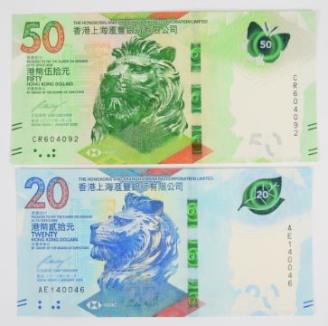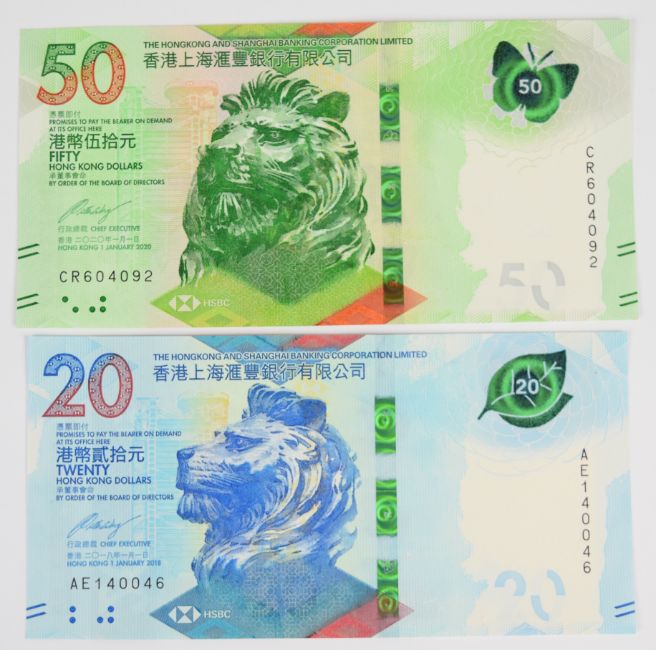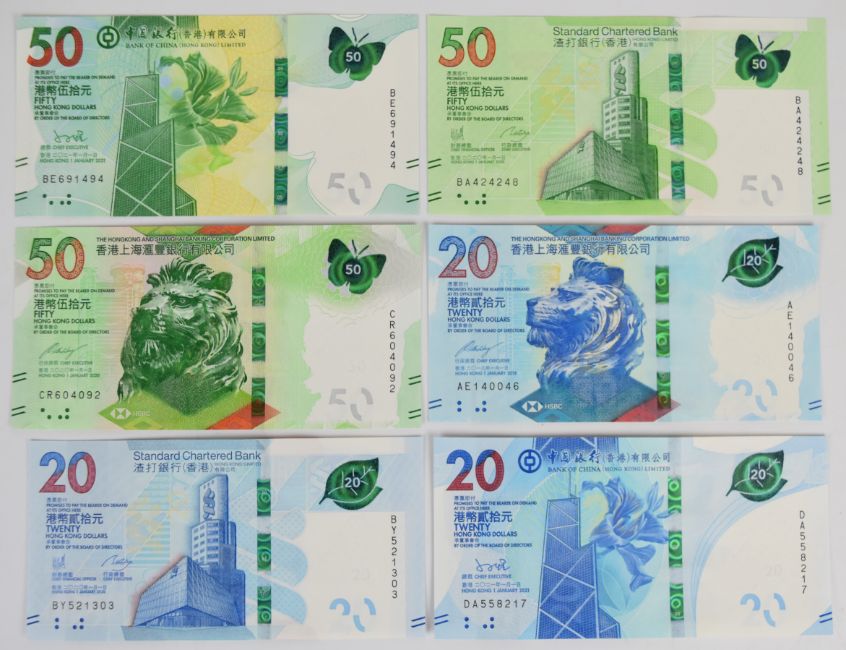 Six Hong Kong 2018-21 $20 and $50 banknotes including HSBC, Standard Chartered Bank and Bank of China issues