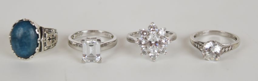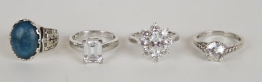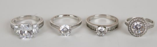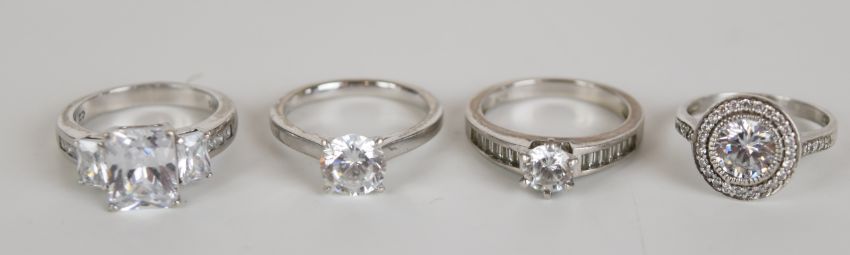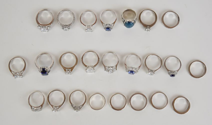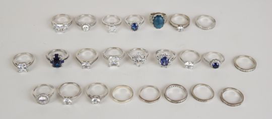 Twenty four silver rings set with cubic zirconia, 96g