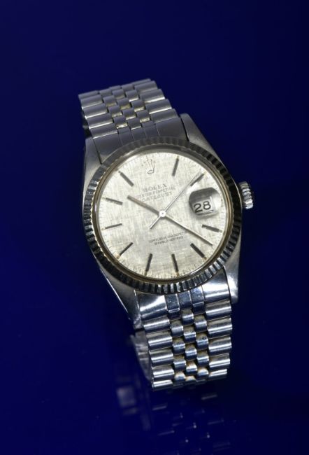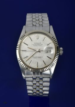 Rolex Oyster Perpetual Datejust gentleman's automatic wristwatch ref. 16014 with date aperture, luminous hands, baton hour markers, silver linen dial, bevelled bezel, stainless steel case and signed 27 jewel calibre 3035 movement, on stainless stell bracelet, case diameter 36mm, serial number 6035298, 1979.