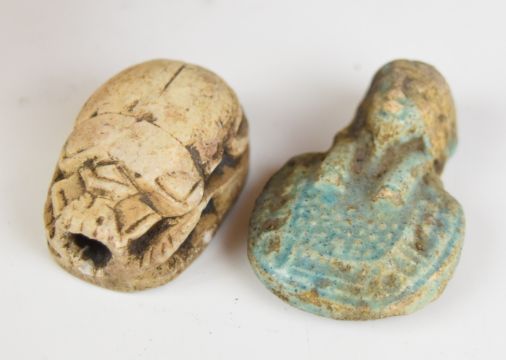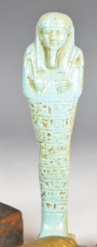 Egyptian collectables including Grand Tour style faience shabti, scarab beetles, Ibis figure etc, tallest 20cm