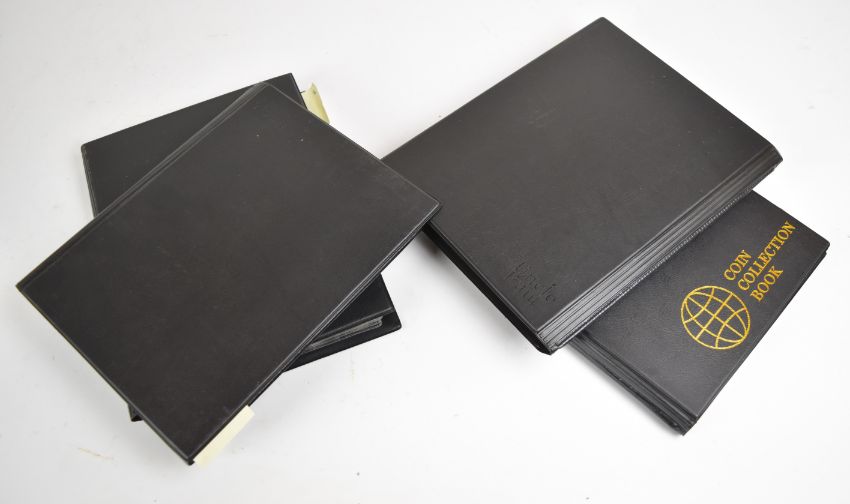 Four coin albums with British pre-decimal coinage including silver threepences to half crowns, Queen Victoria - Elizabeth II, together with 1988 Royal Mint folder decimal set, approximately 550g of silver content