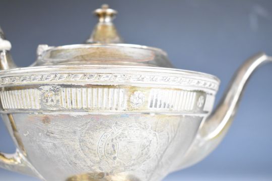 Birks sterling American silver teapot of Neoclassical form, with insulated handle, length 26cm, weight 546g all in