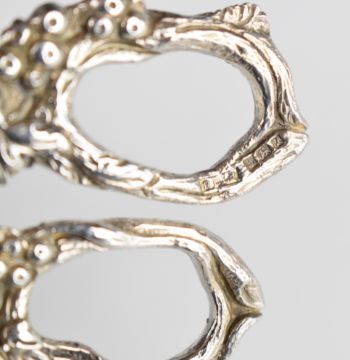 Elizabeth II pair of hallmarked silver grape scissors with vine decoration, London, 1969, maker Reign Beau Ltd, length 16cm, weight 106g
