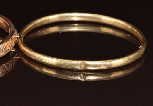 Two 9ct gold bangles, one with ivy decoration and hallmarked Chester 1896, 15.7g