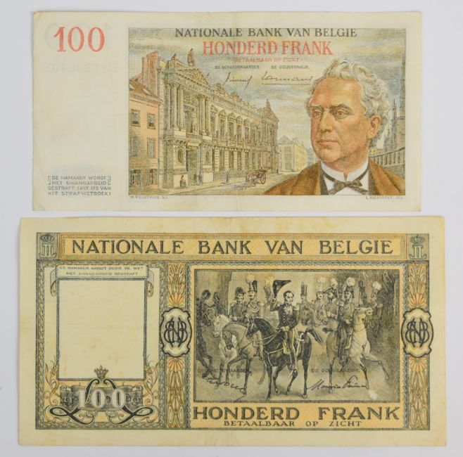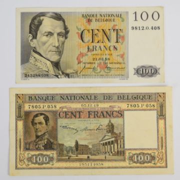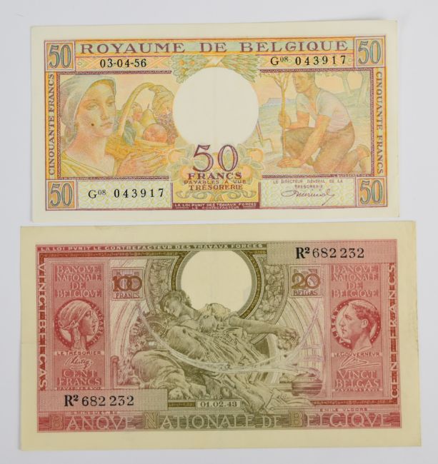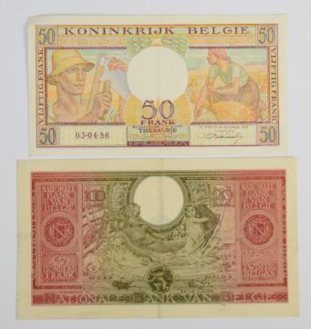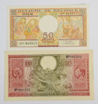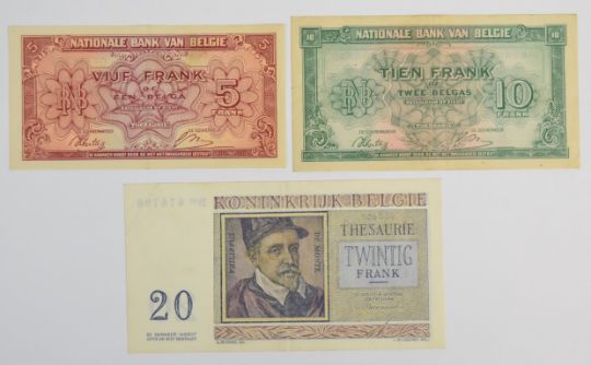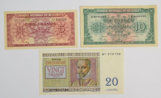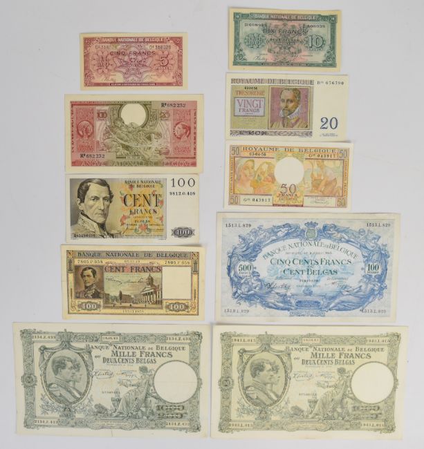 Ten Belgium 1943-58 banknotes including 1943 'London type' 5, 10 and 20 Francs, issued by the Belgian Government-in-exile