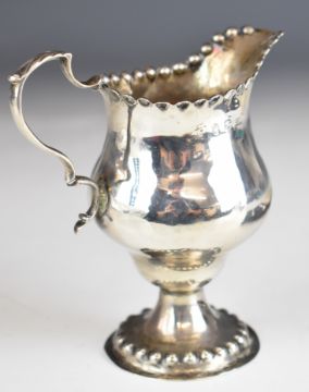 Georgian hallmarked silver cream jug with bobble edge and rim to base, London marks but rubbed, height 11.5cm, together with a cased set of hallmarked silver coffee bean spoons, weight of all items 114g