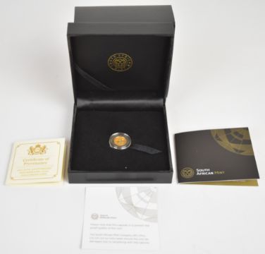 South African Mint limited edition (1366/5000 and 02110/12000) 2016 gold proof ¼ ounce and 1/20 Krugerrands, cased