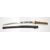 Japanese Samurai sword with signed tang, two menuki, bound grip, decorated tsuba, 68cm curved blade and scabbard with leather cover. PLEASE NOTE: WE ARE NOT ABLE TO OFFER OUR USUAL POSTAGE SERVICE FOR THIS LOT