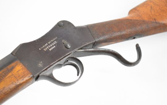 Westley Richards .300 Sherwood Martini-action rifle with named lock, adjustable sights, chequered grip and forend and 27 inch barrel, overall length 110cm, serial number 7355.