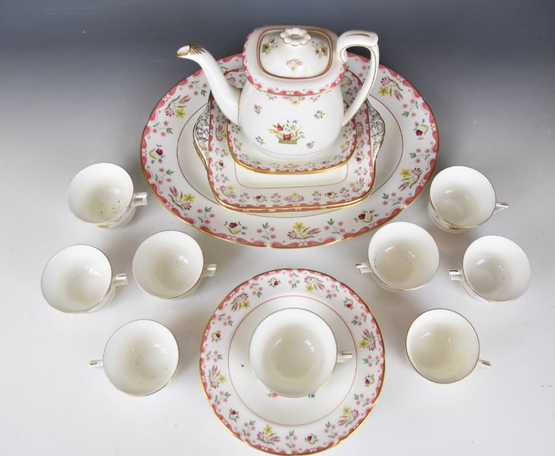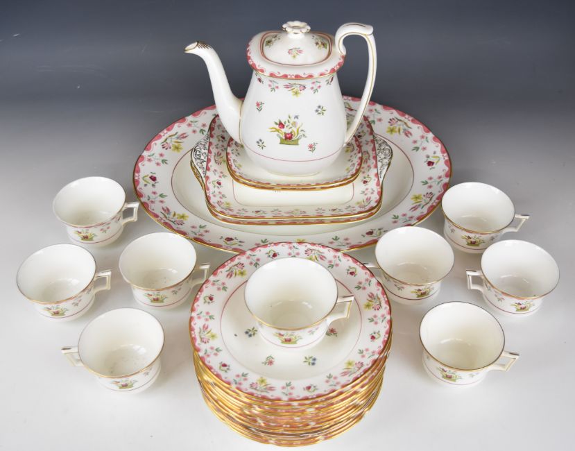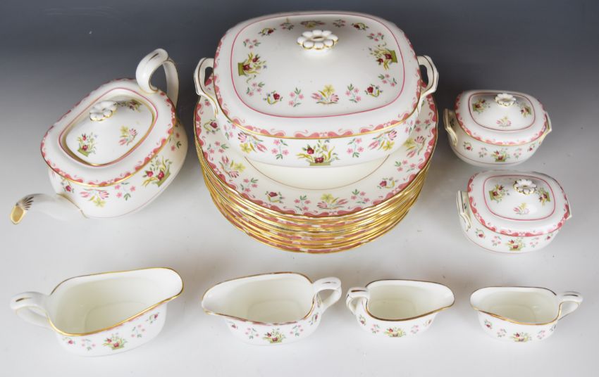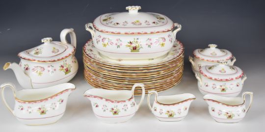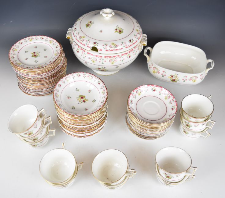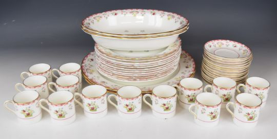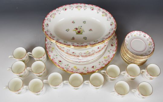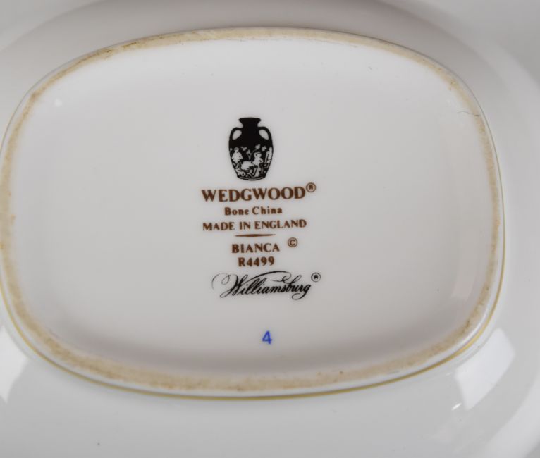 Wedgwood dinner, tea and coffee service decorated in the Bianca / Williamsburg pattern, mostly twelve place setting with extras, approximately one hundred and sixty seven pieces