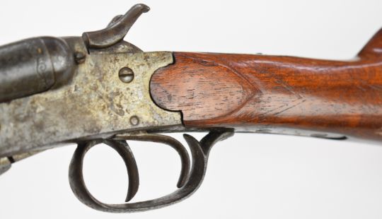 Belgian .410 side by side hammer action folding poacher's shotgun with chequered forend, double trigger and 27.5 inch barrels, overall length 108cm, length of pull 36.5cm, NVSN. PLEASE NOTE THAT A VALID RELEVANT SHOTGUN CERTIFICATE IS REQUIRED TO VIEW OR PURCHASE THIS LOT AND FOR ALL SHOTGUNS OR RIFLES PLEASE ENSURE YOU HAVE THE RELEVANT CERTIFICATE BEFORE BIDDING.