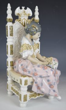 Lladro child figure Second Thoughts, seated girl with flowers, H27cm