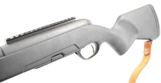 Sauer Safebolt .30-06 bolt-action target rifle with composite stock, semi-pistol grip, scope rail, leather sling and 25 inch barrel, overall length 112.5cm, serial number 1048294. PLEASE NOTE THAT A VALID RELEVANT FIRARMS CERTIFICATE IS REQUIRED TO VIEW OR PURCHASE THIS LOT AND FOR ALL SHOTGUNS OR RIFLES PLEASE ENSURE YOU HAVE THE RELEVANT CERTIFICATE BEFORE BIDDING.