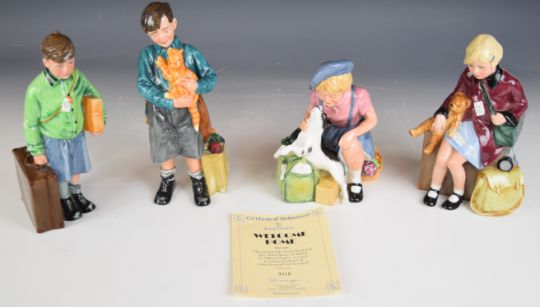 Four Royal Doulton limited edition figures Girl Evacuee, Boy Evacuee, Homecoming and Welcome Home, the latter with certificate, all boxed, tallest 23cm