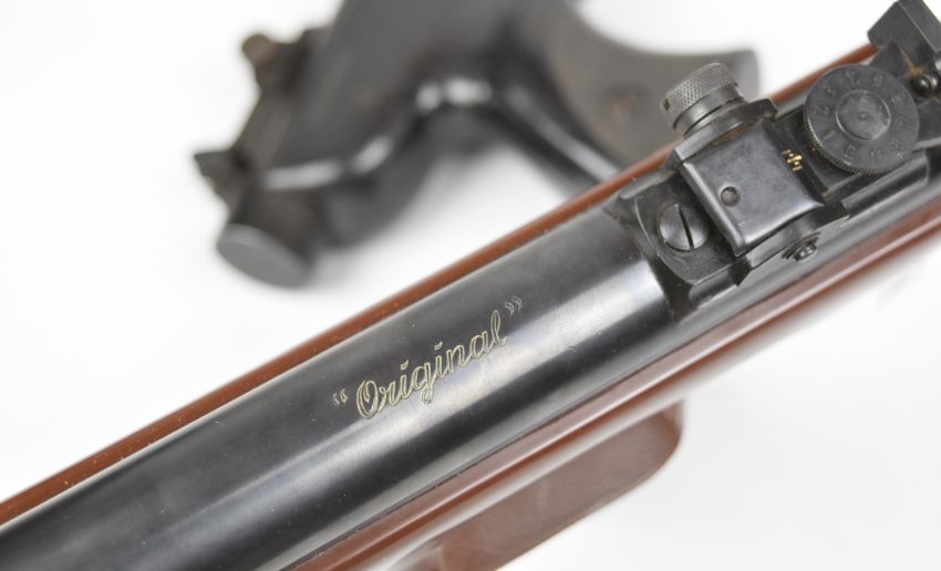 Two target air pistols Original Model 5 .22 and Bullseye RO72 .177, both with shaped grips and adjustable sights. PLEASE NOTE: IF YOU REQUIRE POSTAGE, THIS LOT CAN ONLY BE SENT TO AN RFD
