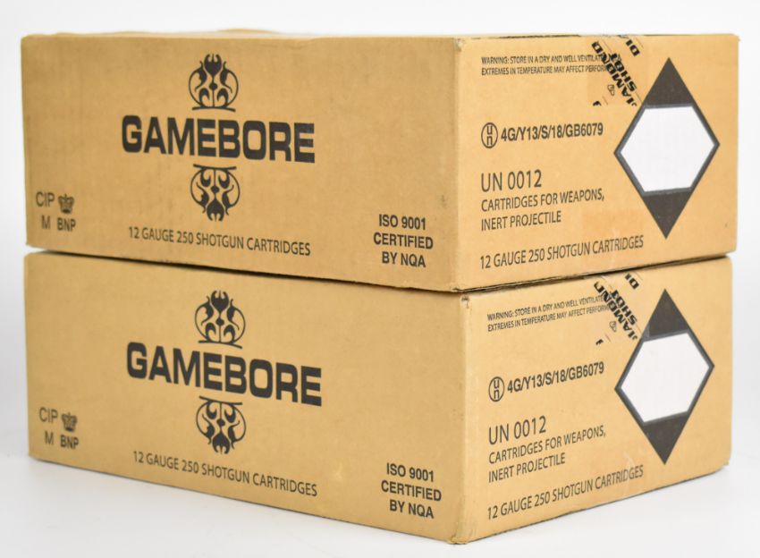 Five hundred 12 bore Gamebore White Gold 28g 7.5 shot shotgun cartridges, all in original boxes. PLEASE NOTE THAT A VALID RELEVANT SHOTGUN CERTIFICATE IS REQUIRED TO VIEW OR PURCHASE THIS LOT AND FOR ALL SHOTGUNS OR RIFLES PLEASE ENSURE YOU HAVE THE RELEVANT CERTIFICATE BEFORE BIDDING. We are not able to offer our usual postage service for this lot
