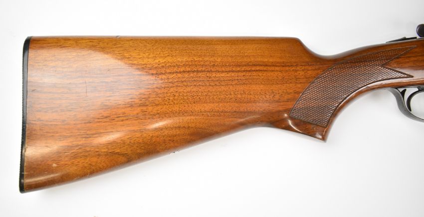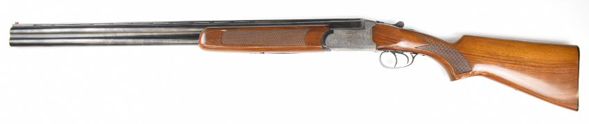 Breda 12 bore over and under shotgun with engraved birds and dogs to the locks and underside, engraved top plate and thumb lever, chequered semi-pistol grip and forend, double trigger, vented top rib and 27.5 inch barrels choked ½ and ¼, overall length 112.5cm, length of pull 36.5cm, serial number 40C82. PLEASE NOTE THAT A VALID RELEVANT SHOTGUN CERTIFICATE IS REQUIRED TO VIEW OR PURCHASE THIS LOT AND FOR ALL SHOTGUNS OR RIFLES PLEASE ENSURE YOU HAVE THE RELEVANT CERTIFICATE BEFORE BIDDING.