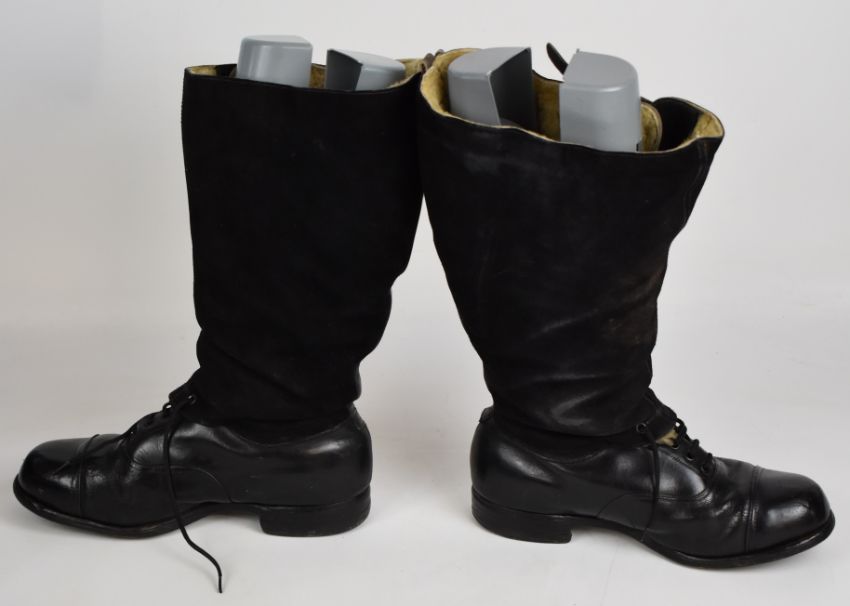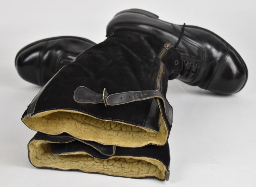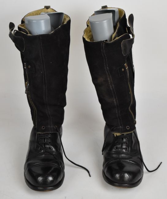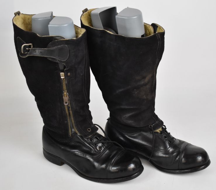 Pair of Royal Air Force WW2 'escape' boots size 7, wool lined, with ministry mark and Lightning to zip pull, right boot zip missing some teeth