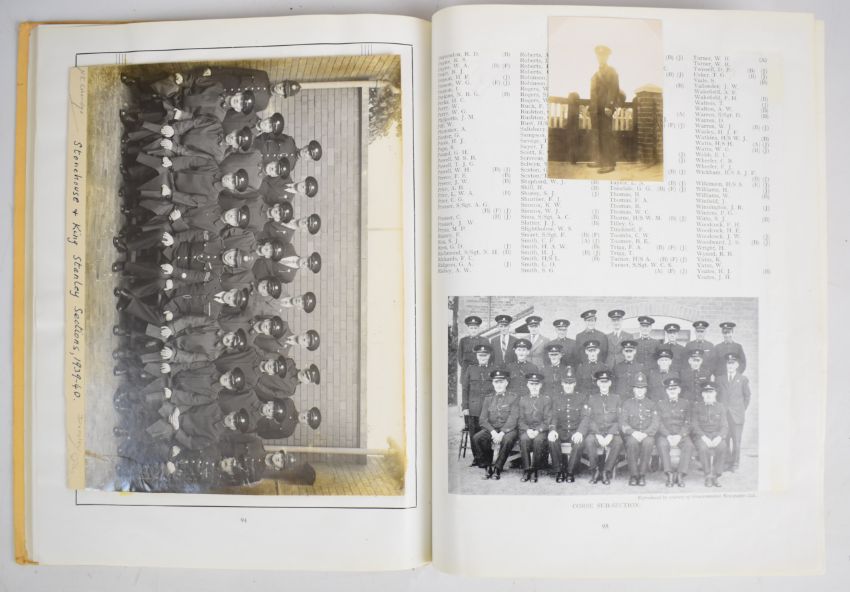 Stroud and environs local interest WW2 Special Constabulary medals and related ephemera including King George VI Special Constabulary Long Service Medal with bars for 1953, 1963 and 1975, Defence Medal named to Alexander D. Cathcart, The War Record Book of the Gloucestershire Constabulary published by authority of the Chief Constable Colonel W.F Henn, M.V.O, containing an article on the bombings in Gloucestershire, photos and brief descriptions of some of the Special Superintendents and photos and names of the various divisions, Stonehouse and Kings Stanley sections 1939-1940; letters to Alexander Cathcart including promotion to Sergeant, letter of release on reaching 67 years of age, his 'Brodie' steel helmet named to chin strap, arm band, cap and lapel badge, buttons, rank insignia, handbook, pieces of shrapnel including one with paper label '1939-1945 Eastington' and tail fin of an incendiary bomb etc