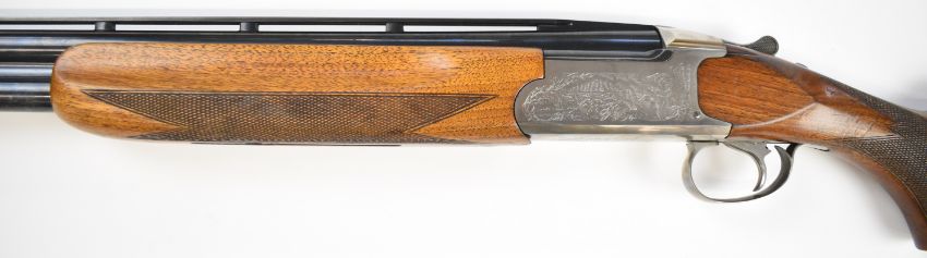 Miroku 3000 12 bore over and under ejector shotgun with engraved scenes of birds to the lock and underside, chequered semi-pistol grip and forend, single trigger, vented top rib and 28 inch multi-choke barrels, overall length 113cm, length of pull 36cm, serial number 44636PV.  PLEASE NOTE THAT A VALID RELEVANT SHOTGUN CERTIFICATE IS REQUIRED TO VIEW OR PURCHASE THIS LOT AND FOR ALL SHOTGUNS OR RIFLES PLEASE ENSURE YOU HAVE THE RELEVANT CERTIFICATE BEFORE BIDDING.