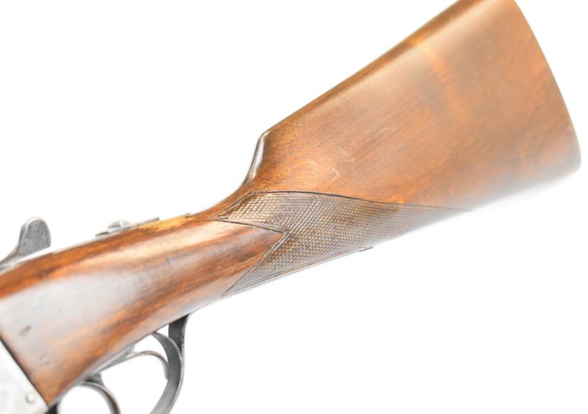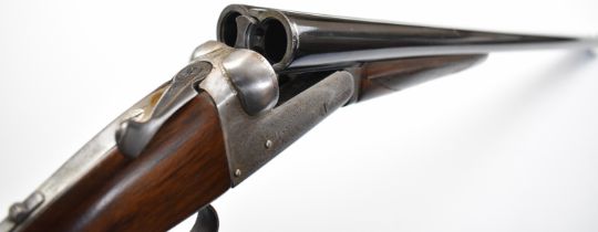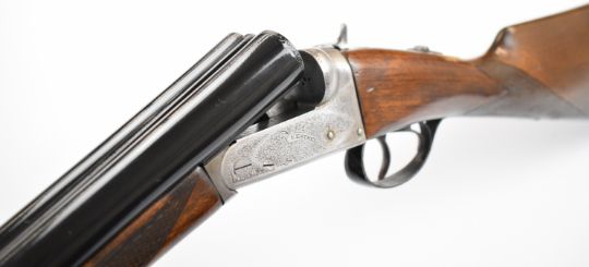 Gunmark Kestrel 12 bore side by side shotgun with named and engraved locks, engraved underside, trigger guard and thumb lever, chequered grip and forend, double trigger and named 27.75 inch barrels choked ¼ and ½ , overall length 113.5cm, length of pull 37cm, serial number 301171. PLEASE NOTE THAT A VALID RELEVANT SHOTGUN CERTIFICATE IS REQUIRED TO VIEW OR PURCHASE THIS LOT AND FOR ALL SHOTGUNS OR RIFLES PLEASE ENSURE YOU HAVE THE RELEVANT CERTIFICATE BEFORE BIDDING.
