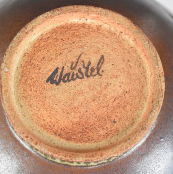 Waistel Cooper 1921-2003 stoneware / studio pottery pedestal spherical vase, the flared rim with speckled glaze, signed to base, diameter 16cm x H14cm