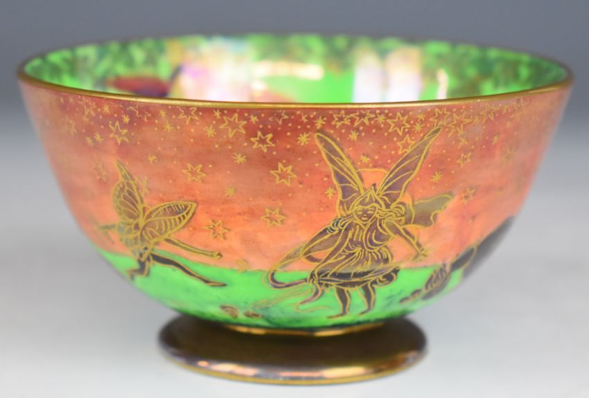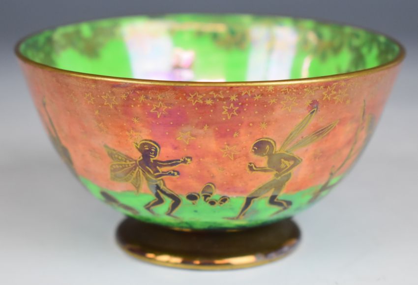 Daisy Makeig-Jones for Wedgwood fairyland lustre pedestal bowl decorated in the Leaping Elves pattern, diameter 10cm, H5.5cm
