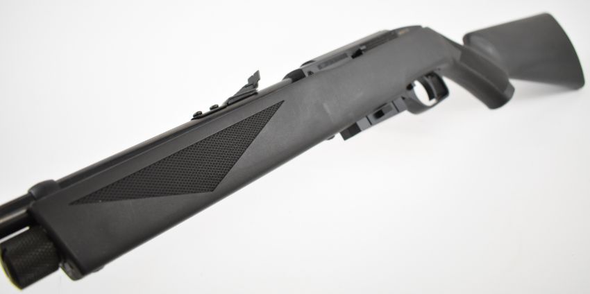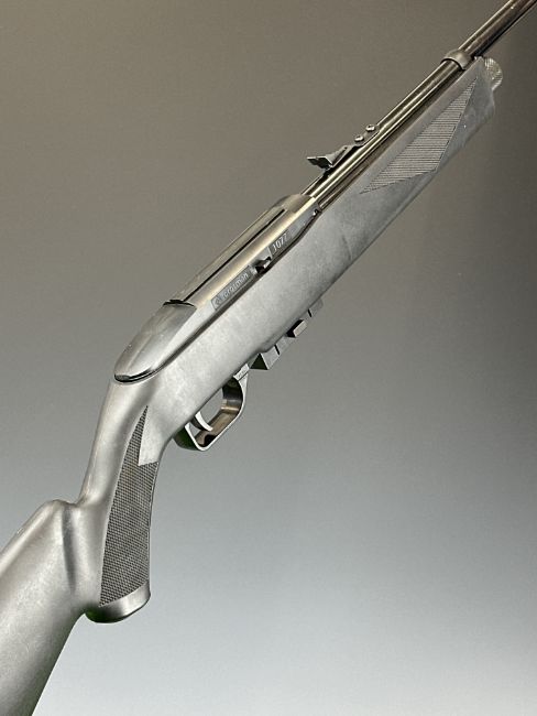 Crosman Repeatair 1077 repeater .177  COair rifle with chequered semi-pistol grip, composite stock, adjustable sights and four 12-shot magazines, serial number N23B10135, in original box with instructions. PLEASE NOTE: IF YOU REQUIRE POSTAGE, THIS LOT CAN ONLY BE SENT TO AN RFD