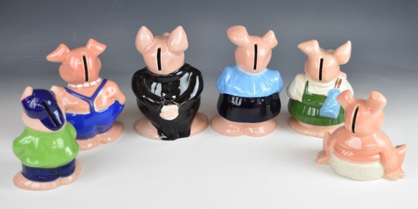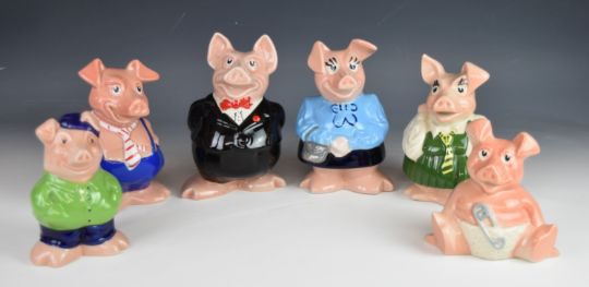 Set of Wade Natwest pigs with stoppers, including Cousin Wesley, tallest 8cm Provenance:- the vendor worked for Natwest and obtained them directly from the bank