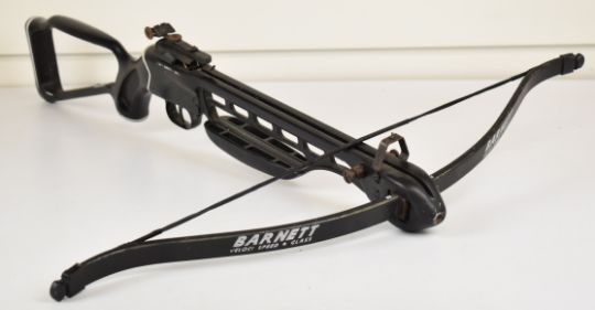 Barnett crossbow with composite skeleton stock, semi-pistol grip and adjustable sights.