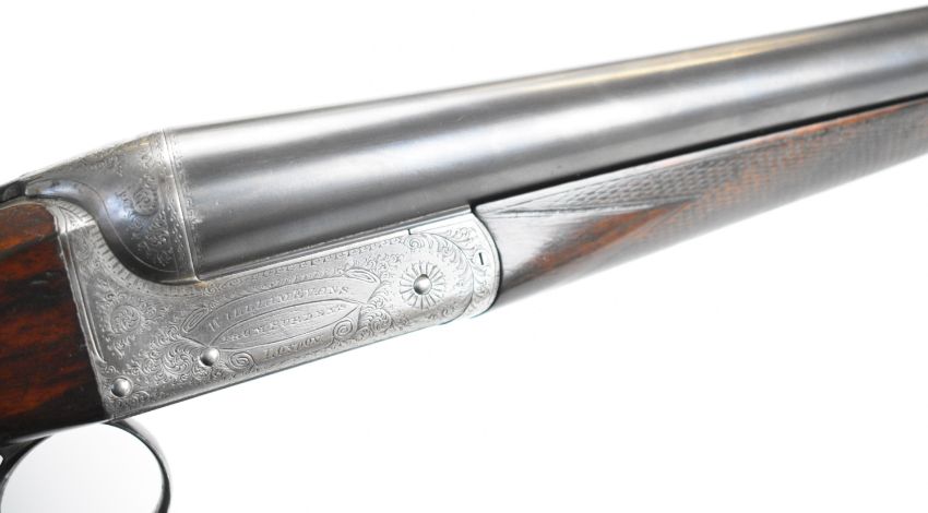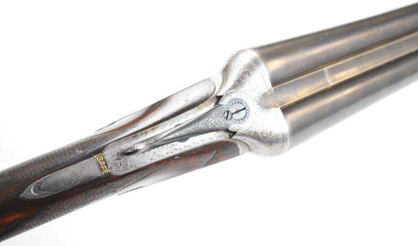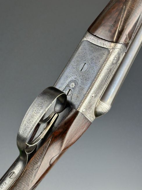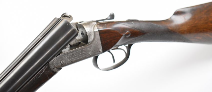William Evans 12 bore side by side ejector shotgun with locks engraved 'William Evans From Purdey's London', scrolling engraving to the locks, underside, trigger guard, top plate, thumb lever and fences, chequered grip and forend, carved teardrop to the wrist, vacant cartouche to the underside of the stock, double trigger and named 30 inch barrels choked ¼ and cylinder, overall length 118.5cm, length of pull 37cm, serial number 6874. PLEASE NOTE THAT A VALID RELEVANT SHOTGUN CERTIFICATE IS REQUIRED TO VIEW OR PURCHASE THIS LOT AND FOR ALL SHOTGUNS OR RIFLES PLEASE ENSURE YOU HAVE THE RELEVANT CERTIFICATE BEFORE BIDDING.